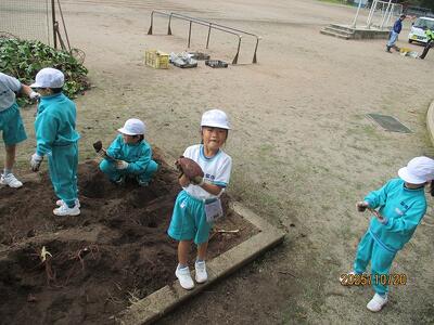 外から1年生の歓声が。畑で、さつまいもの収穫をしていました!