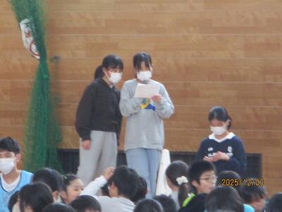 前に踏み出す 体づくり委員会 投稿: 校長 (14:26) 体づくり委員会主催の「王様ドッジボール大会」。今日の昼休みに開催されました。 昨日も集会が行われましたが、今日も、たてわり班を使って全校生を4グループに分けての大会でした。 みんなが仲良くなれる、チーム力を高めるために、前に踏み出す企画を進めました。 歓声と悲鳴が、体育館に響き渡りました!いやあ、大盛り上がり。 Tweet -