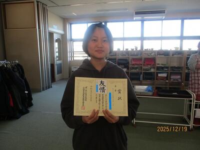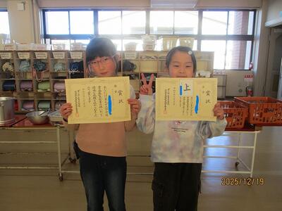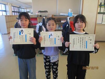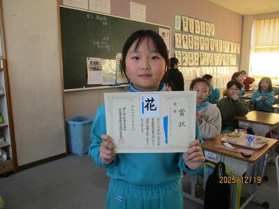 たくさんの おめでとう!! 投稿: 校長 (13:53) 今日の給食の時間を利用して、広島県熊野町で主催している「第93回全国書画展覧会」の表彰を行いました。金賞には作品の画像が付いています。また、昨年入賞して購入したというキーホルダーも見せてもらいました。みなさんがんばりましたね(^^♪ 今日は気持ちの良いお天気になりました。明日も続きそうですね(^^♪ 2学期最後の週末になります。よい週末をお過ごしください! Tweet -