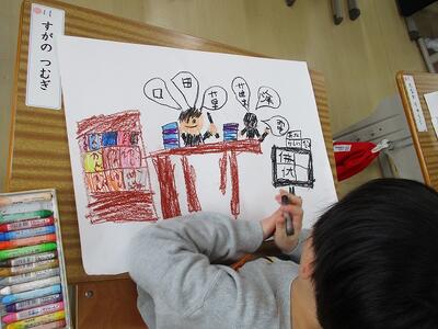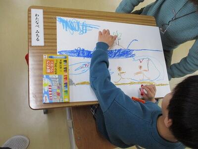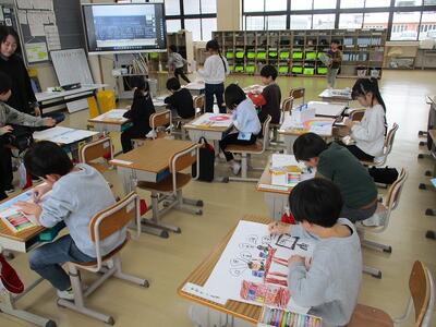 まず、10時50分頃、校内をまわってみました。4時間目が始まったころです。中間休みも無かったわけですが、みんな頑張っていましたね!1の1は図工!1の2は音楽!