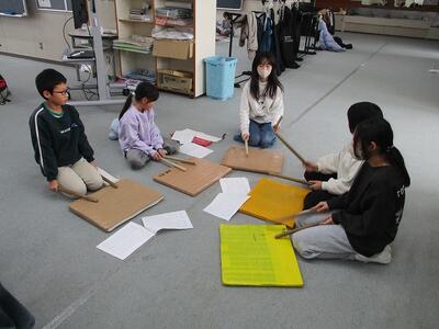 4・5年生は太鼓の引継ぎ。