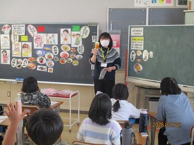 3年生の食育。南部小の石山栄養教諭。