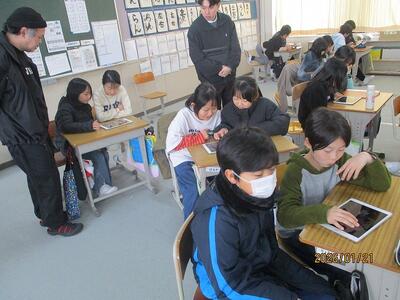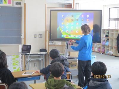 4年生は総合で、ストロボライト(街角テレビを管理している会社です)さんから2名の方がいらして、CMづくりについて教えてもらいました。明日も来校いただけます。