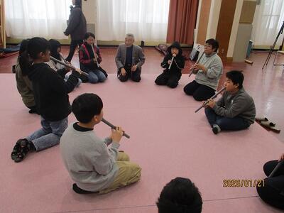 6年生は和楽器体験。山形市より三曲会の皆さんからご来校いただき、琴と尺八の演奏を、聞いて、実際にやってみて、演奏してみて。貴重な体験でした。