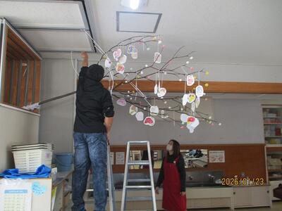 2年教室には昨日のだんご木が!用務員さんありがとう!