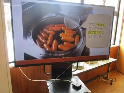 大型テレビでは、子供たちから大人気の「きなこパン」の実際に作る工程が紹介されています!