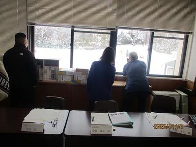 1の1は、雪遊び。会議室の窓からの参観になりました。
