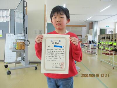 先日、「全国国土と交通に関する図画コンクール」に佳作入賞した6年生と、「全国児童画コンクール」に入選した1年生と2年生の表彰を行いました。全国のコンクールです。すばらしいですね!クラスのみんなから拍手されて、うれしそうでした!