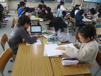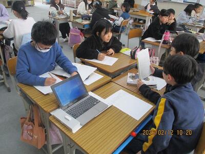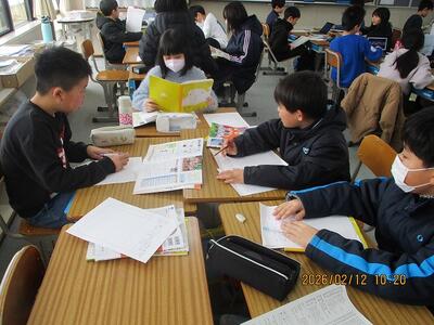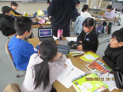 今日、4年生の社会科では「ジグソー学習」を行っていました。4つのことについて分かれて詳しく調べ学習を行い、違うことを調べた3~4人が集まって、それぞれ学んだことを他の人に伝えるという学習方法です。責任感を持って学んで伝える、難しい学習ですが、がんばってチャレンジしていましたよ!