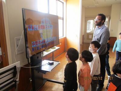 今日のお昼の時間、先週子供たちに取った「午前5時間制」のアンケート結果を、テレビで紹介しました!
