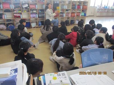 0218 学校の様子 投稿: 校長 (12:57) 今日は、今年最後の読み語り。子どもたちが楽しみにしている、絵本の読み聞かせです。 今日も各学年に合わせた楽しい絵本を紹介していただきました! そして、最後は、どの学年でも、お礼のお手紙を渡し、感謝の気持ちをお伝えしました! 昨日も感謝の会。 今年も残り、登校日は19日だそうです。いろんな面で、まとめの時期ですね! Tweet -