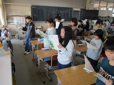 3年生は国語の授業。友だちの言葉をしっかり受け止める3年生が多いです。