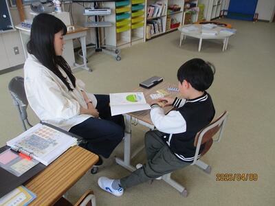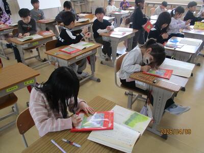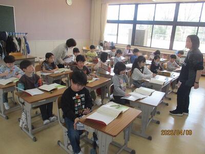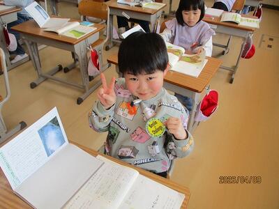2年生は、教科書に名前を書いたり・・・。「先生、漢字で名前書けるよ!」張り切っています!