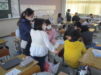 0423 学校の様子 投稿: 校長 (11:38) 今日は全国の6年生を対象として学力調査が行われています。本校の6年生もがんばっていました! どうやら4年生、総合的な学習の時間で、地域との連携に向けて動き出しているようです。いろいろ頭を悩ませて、いい話し合いが展開していましたよ! 2年生は図工。クレヨンを使って模様づくり。「きれいにできたー!} Tweet -