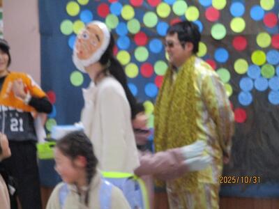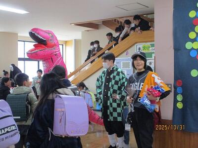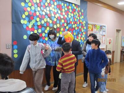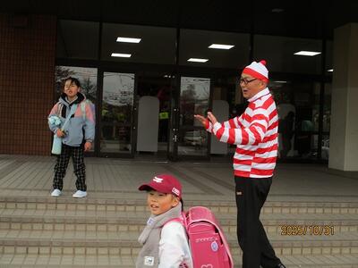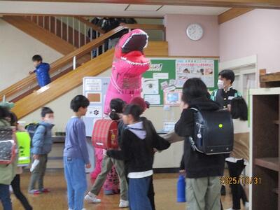今日くらいは・・・。お楽しみの朝でした。先生方が登校してきた子どもたちをお出迎え!