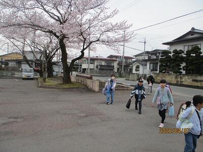 今年度、初登校 投稿: 校長 (12:44) 今日からいよいよ、子どもたちも登校して、令和8年度がスタートしました。 桜の花も、子どもたちの登校に合わせ、すっかり咲きそろってきています。七分咲きと言ったところでしょうか。 「担任の先生だ~れ~!」 走って校門を潜り抜ける子供も・・・・・・。 期待いっぱいのスタートです!