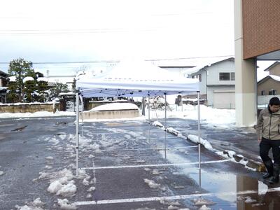 11月のことになりますが、公益財団法人日本教育公務員弘済会様より「学校用ワンタッチタープテント」を寄贈していただきました。3M×6Mの大きなテントです。先生方と一緒に立ててみました。