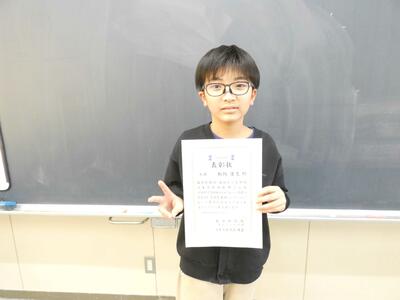 「第41回全国小・中学生作品コンクールプログラミング部門」において、「子どもの文化・教育研究所理事長賞」に輝いた6年児童に賞状を渡しました。プログラミング部門のコンクールがあることにびっくりしました。