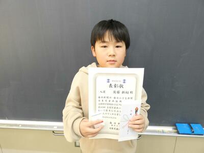 トロフィーもりっぱですね。「希望の朝」という文字を堂々と、のびのびと書きました。書道は楽しいので、これからも続けたいそうです。校内書き初めも楽しみにしています!
