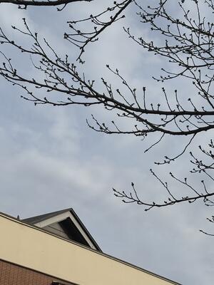 柴橋小学校の校庭の桜です。ここ最近、寒さが戻ったせいかまだ蕾が固そうですが、だいぶふくらんできたように感じます。