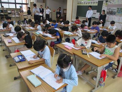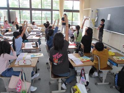 4年生、今日は5年生の渡邉先生が授業をしてくれています!生き生きしていますね!