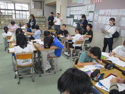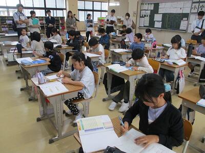 陵南中、その学区内の小学校(中部・南部)の先生方をお招きして、陵南学区研修会が行われ、子どもたちの授業の様子を参観してもらいました。