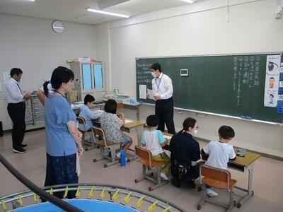 4年生はここ数年、地区の「しばはし防災参観日」との合同開催ということで、防災について学ぶ第1部と、地域の避難所開設訓練の体験の第2部で行われました。