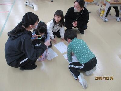 でも、それだけではありませんでした。後半戦は、1年生に作り方を教えて、実際に作って遊んでもらうと。これはいいですね!1年生と2年生、頭を寄せ合い、しっかり話を聞いてがんばりました!