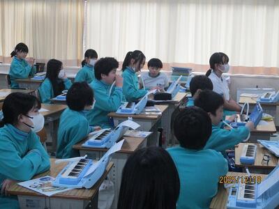 5年生は鍵盤の発表会。自分の作った旋律を聞き合っていました。