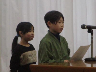 2学期を振り返って発表した2年生と4年生。次の自分につながる、すばらしい振り返りでした。