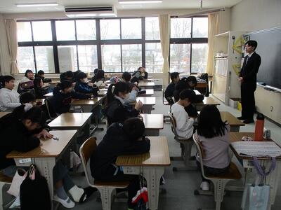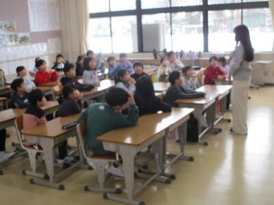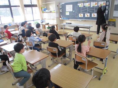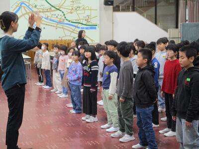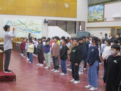 いつも元気に遊ぶ中間休みですが、5分早く切り上げて教室に戻って、全校生で取り組みます。