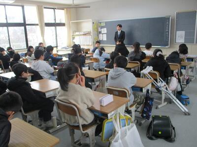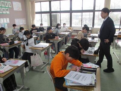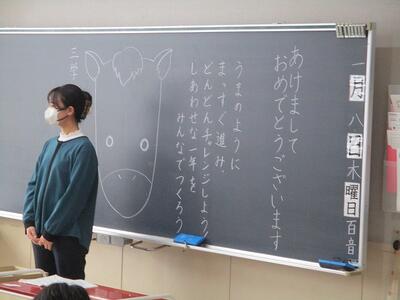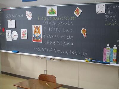 各教室に入った子どもたち。課題を出したり、友だちと休みの話をしたり、クラスで3学期スタートの気持ち作りをしたり・・・。各教室で、和やかなスタートを切っていました。