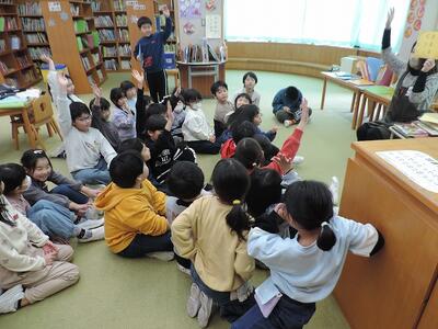 2年生は「午年」にちなんだ読み聞かせ。難しいクイズにもこたえながら・・・