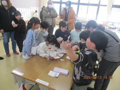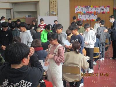在校生から志木市のプレゼント。6年生からは一人一人にメッセージ!お互いにうれしそう!