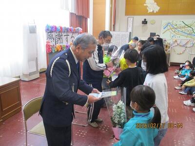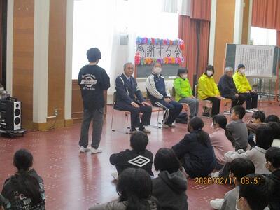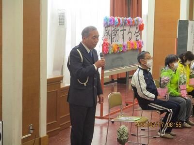 今日は、毎日お世話になっている交通指導員さん、通学サポーターの皆さんに感謝する会。