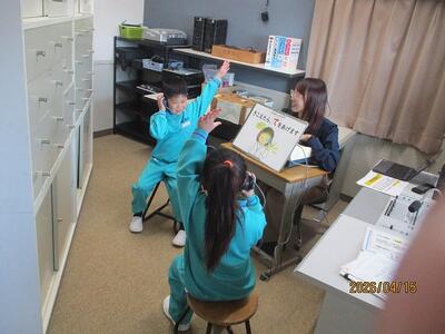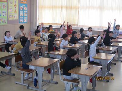 1年生も国語の学習。しっかりお話を聞いて、自分の考えを発表していました!