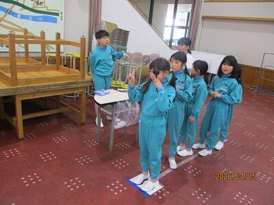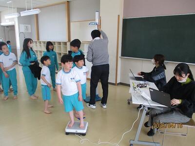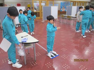 まずは、全校での身体計測。身長、体重、視力、聴力の検査。「おっきくなった!」と笑顔で教えてくれる子供たち!